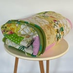 Every piece I create is lovingly handmade with the utmost care, using only the finest vintage fabrics. Selected for its unique charm, but as an upcycled material, they may carry slight imperfections that add to their character. Embrace the beauty of one-of-a-kind craftsmanship!