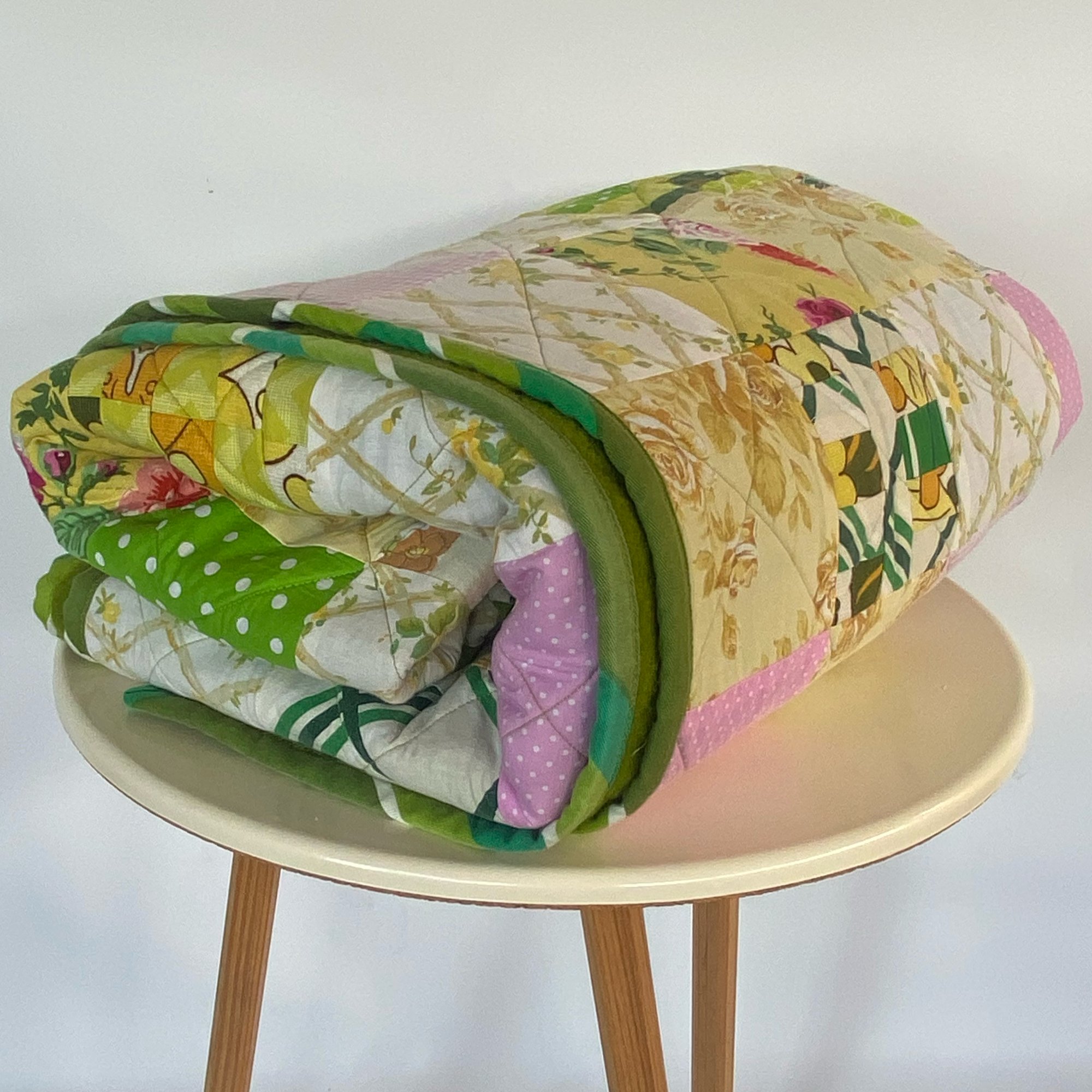 Verdant Heritage Handmade Quilt Upcycled Vintage Fabrics & Wool Blanket